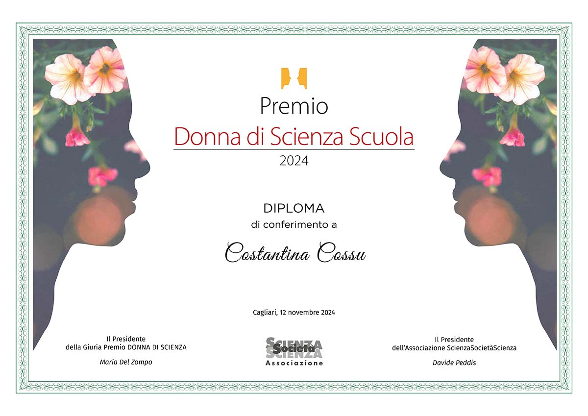 Premio Donna di Scienza Scuola 2024 assegnato alla Dottoressa Costantina Cossu con la seguente motivazione: